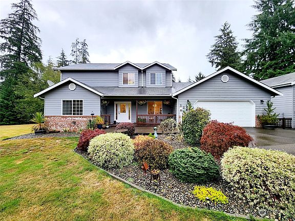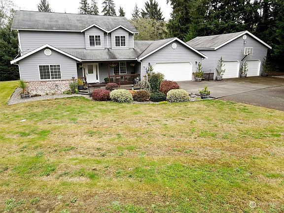 Beautiful custom built home with a gorgeous deck overlooking a picturesque river front property. Enjoy your peaceful almost 9 acres just outside of Montesano. Property boasts many level acres that are cleared for enjoyment, and some wooded for privacy. Sturdy bridge across river to your back acreage for ATVs, tractor, etc. Home features a spacious primary bedroom w/en suite and a sliding glass door to upper deck. 2 bedrooms and full bath upstairs, then downstairs you will find a bonus room, dining room, double living room space, kitchen with plenty of cupboard and counter space, propane fireplace, and half bath. 2 car garage with expansive storage above, and large 28x30 shop with partially finished loft space above. This home has it all!
