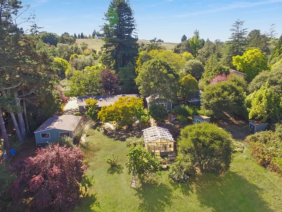 Welcome to a world traveler's paradise. Perfect setup for a compound. The estate features a bright, roomy, single-level 2 bed 2 bath 1500sf ranch house on a pull-through driveway, a 1000sf workshop barn, 384sf greenhouse, 360sf finished shed, and second unit: a 900sf double wide trailer with 2 beds and a bath. The second dwelling has its own address, driveway, and meter. The impressive finished shed is nice enough to function as another bedroom. Your own personal retreat with spacious outbuildings perfect for a workshop, private yoga or art studio. International accents elegantly woven within garden grounds boasting sunshine and valley views. Covered porches provide private places to relax and enjoy the lush greenery with courtyard feel. The gardens have raised beds and sunny pastures for animals or orchards. Fruit trees, flowers, and good vibes grow here in Luther Burbank's favorite Gold Ridge sandy loam soil. The apples, cherries, persimmons, plums, apple-pears, kiwis, grapes, hazelnut, and fruiting olives are thriving. Exceptional elevation just between town and the coast. Ample parking and storage. Separate entrance and driveway for trailer make a very sweet setup. If you are seeking a place to let your imagination run wild then look no further. World-class living.