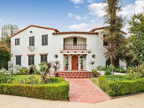 Located just south of Wilshire, this expansive Spanish home personifies Westwood character with hardwood floors, arched doorways, wrought iron railings and lathe and plaster walls throughout. The downstairs features a two-story sunlit entrance, sweeping staircase with inlaid tiles, spacious formal living room with exposed beam ceiling and fireplace, large formal dining room, cozy separate breakfast room, cook's kitchen with Sub-zero, and a gracious family room connected to a full bath. All 5 bedrooms are upstairs including 4 generous family bedrooms, utilizing 2 upgraded full baths, and a generous master suite with multiple closets, Juliet balcony and colorful vintage tiled en-suite bath. The rear of the house opens to a private paver stone patio with built-in barbeque and heated spa. The house also has detached 2 car garage and multi-zone HVAC. Centrally located only minutes from Beverly Hills, Westwood Village, Fairburn school and numerous houses of worship make this a must-see home.
