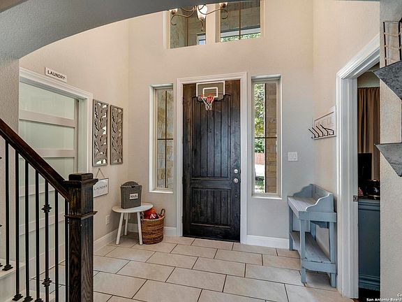 Stunning 4 bedroom/3.5 bath home w/beautiful pool! Pool installed in 2022 ($63,300). TWO primary suites downstairs, 2 additional bedrooms up w/full bath, game room & media room. Upon entry you'll observe the 8 ft entry door, open spindle stair rails, staggered tile flooring, soaring ceilings & lots of natural light from numerous windows w/many custom touches throughout the home. Kitchen features large island with granite counters, stainless steel appliances & gas cooking. Larger primary dn offers wood flooring, bay window niche, large walk-in closet w/ gorgeous bathroom featuring walk in mud set shower, garden tub & sep vanities. 2nd suite down includes wood flooring with full bath. Great use of space in the backyard with two covered patios and inground pool ready for you to make some memories. Easy access to Loop 1604, HWY 151, HWY 211 to Hwy 90.