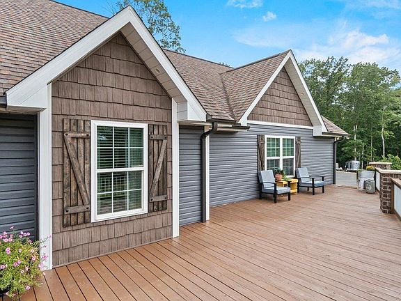 This Craftsman style 24 acre estate has a 4 bedroom home with an open living/dining room, 15 ft vaulted ceilings with beams, stone fireplace, master en-suite, walk in closet w/main level laundry. Kitchen has custom cabinets, a large island, walk in pantry. Lower level has family room w/a wood stove, bedroom, bathroom, bonus room, tandem John Deere room. The wraparound porch has porch swings, stone fireplace with serene views of the pond, horses, and rolling hills. The covered outdoor dining space has a 15 ft vaulted wood ceiling and is steps away from raised beds for gardening, a built-in fire-pit, and above ground swimming pool with deck and pool house. The shop has 3 over-sized garage doors & covered parking for a large RV. The livestock barn has a barn loft, hog pen, chicken house w/fenced yard, tack room, 5 horse stalls, and roof that waters animals via rain runoff. Small hunting cabin on additional land. Add'l connected 182 acres available for sale.