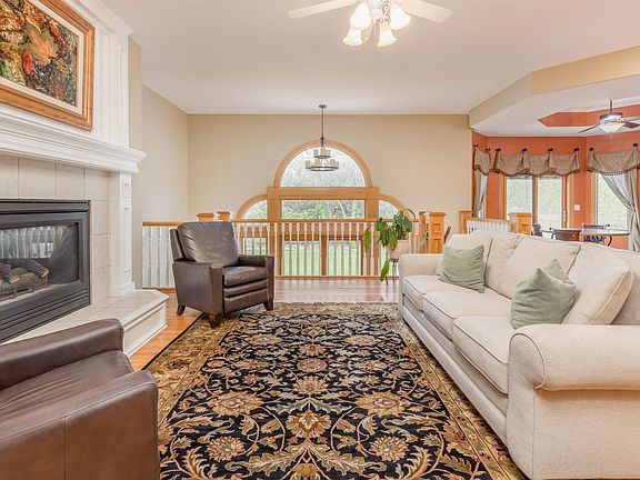 This fabulous 5 bedroom, 3 bath ranch nestled in Hickory Creek Estates is sure to impress! Having received a quality craftsmanship remodel over the last few years, this exceptional home welcomes with a gracious foyer, hardwood flooring, 10'ft. ceilings, and an open floor plan. The heart of the home offers a sizeable living room featuring a gas fireplace open to a separate dining area and a magnificent kitchen fit for any master chef. The custom two-toned gourmet kitchen offers stunning maple soft close cabinetry, eating bar, granite and quartz countertops, electric range, paneled appliances, and under cabinet lighting. Conveniently located off the kitchen is a back hallway with garage access, a drop zone with cubbies, hooks, and drawers, and additional custom cabinetry to support extra storage and laundry area. Retreat to a generous primary suite featuring a coffered ceiling, vast windows, and en-suite bath complete with double vanities, linen storage, beauty tools garage, oversized custom tile shower with rainhead fixture, and a walk-in closet. Head to the mid-level walkout basement boasting a rec/family room with gas fireplace, two additional bedrooms (one currently being used as an office), bathroom, and unfinished storage areas. The home already has a radon mitigation system in place for your added protection! Extend your activities outdoors and enjoy an east facing, private, densely packed tree-lined backyard, with an extended concrete patio and deck. Entertain family and friends at the community salt water pool and clubhouse, or take advantage of the stocked pond and walking paths Hickory Creek has to offer. Trash and Recycling are included in the annual HOA dues.