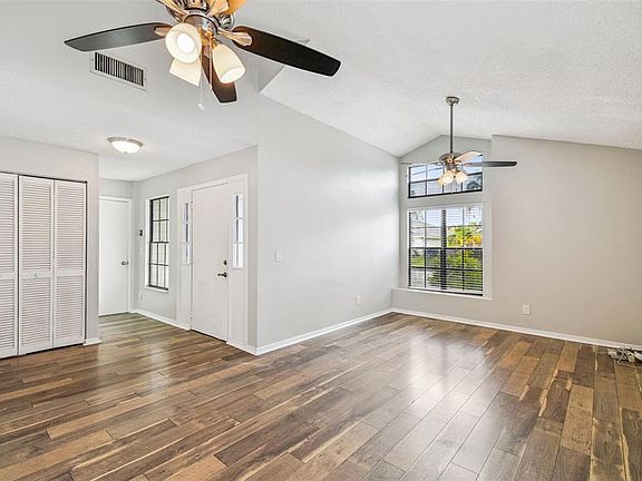 Beautiful home in desirable Hampton Park. New roof 2024! Lovely new luxury vinyl flooring throughout the home. Kitchen and baths totally updated in 2018! Soaring vaulted ceilings in main living areas. Fabulous kitchen with granite counters, stainless appliances and soft close shaker style cabinetry. Newer high efficiency windows and Trane air conditioning system offer energy efficiency. Six ceiling fans throughout the home. Stylish 2 panel interior doors and updated lighting bring a modern flare. Many upgrades within the home and a sizable backyard extends your living space... fully fenced for ultimate privacy! Delightful family home in a desirable school zone and near to parks, shopping and all that the Tampa Bay area has to offer!