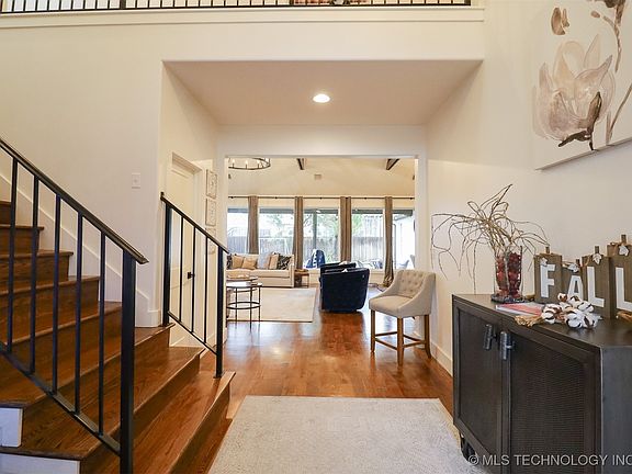 3 bed, 4 bath home with beautiful, mature landscaping. Upscale modern farmhouse/ contemporary design. 2 story with upstairs bonus room, natural oak wood floors, on the entire first floor. gorgeous iron front door, oversized back patio, mature pine trees in backyard, floating shelves, two story stone fireplace, chef's kitchen, floating shelves, expansive living room. Split floor plan with all three bedrooms occupying private corners of the house, 2 with private attached bathrooms. Vaulted ceilings throughout and gorgeous entry way with iron and wood-floored staircase. Full sprinkler system, french drains, in ground garage storm shelter, in ground basketball goal. Plantation shutters installed three years ago.