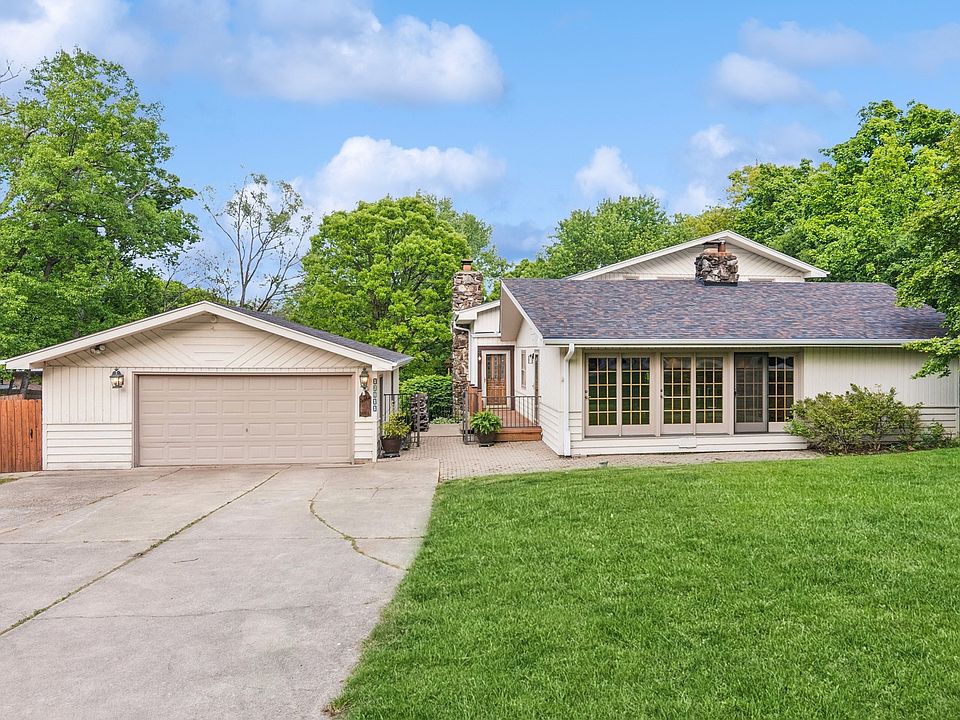 Welcome to your 5BD/2.2BA dream home nestled in a tranquil neighborhood setting surrounded by mature trees and lush greenery. Step inside the bright and inviting great room with a mountain lodge vibe, where soaring vaulted ceilings, new skylights, and natural wood accents complement a striking floor-to-ceiling stone wood-burning fireplace. The open layout and spacious seating areas create a perfect space for cozy nights or lively gatherings. The bright and airy kitchen offers custom cabinetry, a large center island, a sun-drenched breakfast nook framed by a charming arched window, and a door to the deck for grilling or morning coffee and birdwatching. The built-in desk/hutch can act as a family command center, home office or easily convert into a coffee bar! Around the corner from the kitchen you'll find another living area with separate entrance, fireplace and powder room - ideal for a live-work scenario or guest accommodations! The primary suite is located on the main level and has a private entrance to the rear deck. Upstairs you'll find four spacious bedrooms, plenty of hall closets and one full bathroom. The walkout basement is a perfect place for a workshop and storage. This property boasts a crystal-clear heated in-ground pool, expansive wood deck patio, and charming landscaping-perfect for entertaining or relaxing in peaceful privacy. Plenty of parking - room for a trailer/boat and all your cars along with a detached XL 2-car garage. NEW ROOF/Gutters with skylights 2025. This home is in the award-winning Palos School District and still holds the tax benefits of being within unincorporated Palos!