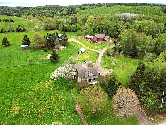 Stunning, Nova Scotia hobby farm on a sheltered acreage minutes from the heart of the Annapolis Valley. 31 pastoral acres offering fenced pasture/paddock, hay, fantastic out buildings, fruit trees, roughly 10 acres of forest with trails, plus a brook at the Western boundary. Private setting, set back from a country road. Set up for horses, small livestock, subsistence farming and much more! Extensive upgrades in recent years have made the property well suited for home based businesses or simply enjoying animals and farming life. The quality and character of this 1869 home shines amid the recent updates. 3 bedrooms, 2 full baths, with the den on the main floor currently used as a 4th bedroom. Open-plan contemporary kitchen/dining room features a generous peninsula, coffee bar, pantry, and charming Elmira wood cook stove. Mudroom and wood shed at the side entry and back utility room with door (& dog door) going directly to the fenced paddock. Two other principal rooms plus full bathroom with laundry on main floor. Upstairs is a large primary bedroom with big closets and views of the Bay, and a luxurious full bath with spa steam shower. Two other bedrooms and an office with Gothic window complete this level. The magnificent barn features a huge workshop, animal stalls, storage attic, upper floor loft designed for entertaining, events or retail (antiques shop or gallery?) Projection TV negotiable. A 2-level roughed in guest quarters is on the North end. The Bay Of Fundy can be seen from the high points of the property. Second smaller barn converted to a 2 story music or art studio (or guest quarters) with bathroom, wood stove, sound proofing and in floor heat. Brite-Span 60'X40' run-in barn with electricity and water is perfect for horses, tack, equipment & vehicle storage. High enough for second level. Poly tunnel greenhouse and water catchment system also on the property. Please request extensive list of features and improvements.
