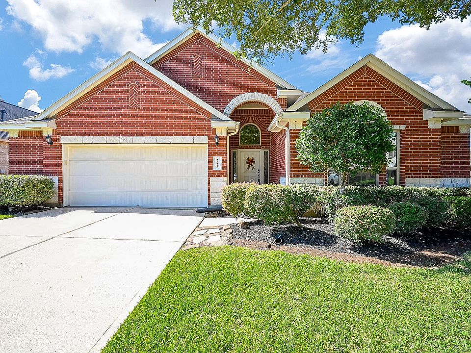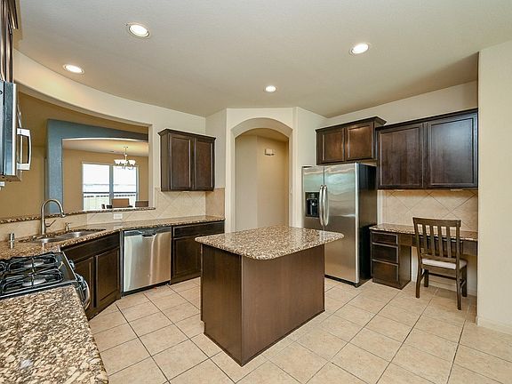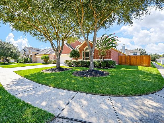 Very rare 1.5 story home w/main rooms/areas downstairs. Beautifully built 4 bedrooms, 3.5 bath home located in Shadow Creek Ranch master planned community. Upstairs layout w/its own thermostat is perfect for a multi-generational family, college student or in-law suite, complete w/ bedroom, walk-in closet, open living area & en-suite bath. Dramatic 13 ft. entry w/ tray ceilings and expansive dining area. Beautiful arches and cozy gas fireplace. Delightful chef's kitchen with granite counters, center island, breakfast bar, built-in desk, stainless appliances, gas stove and walk-in pantry. Split floorplan allows privacy with primary bedroom toward back of the home with dual sinks, garden tub and large walk-in closet. Two downstairs secondary bedrooms also have walk-in closets w/shared bathroom. Additional features include two water heaters, oversized covered patio, newly stained fence & 2.5 car garage. So many amenities here including pools, parks, lakes and more. Call today!