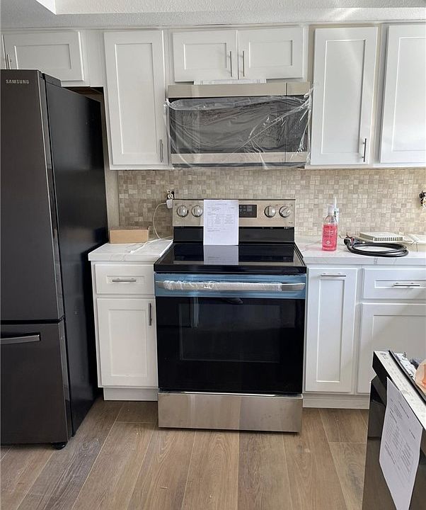 Brand new kitchen cabinets with New appliances ( electric range, dish washer , refrigerator, microwave ) New washer dryer .
