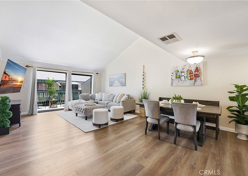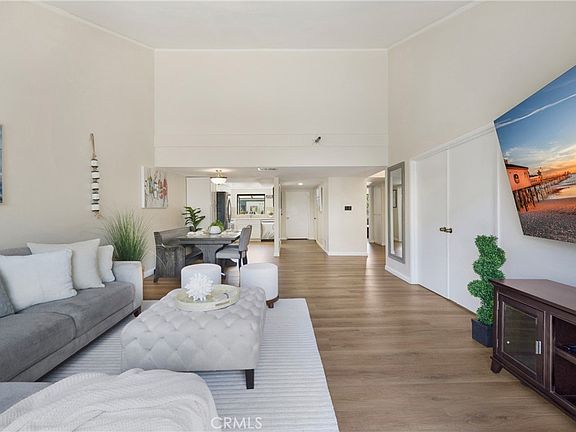 A private balcony expands the living space outdoors, while soaring ceilings and large sliding glass doors flood the area with natural light. This level also offers two well-sized bedrooms, a full bathroom, and a conveniently located laundry area. On the upper level, the primary suite offers a quiet retreat, complete with double closets, generous windows, and an en-suite bathroom. Community amenities include a pool, spa, and poolside shower facilities—perfect for relaxed weekends or entertaining guests. The condo also includes two assigned carport spaces. This is your chance to own in one of Garden Grove’s most desirable gated communities—where thoughtful renovations and a well-designed layout create a truly inviting home.