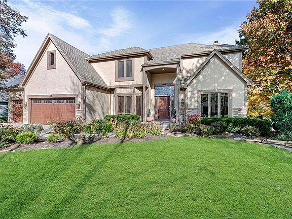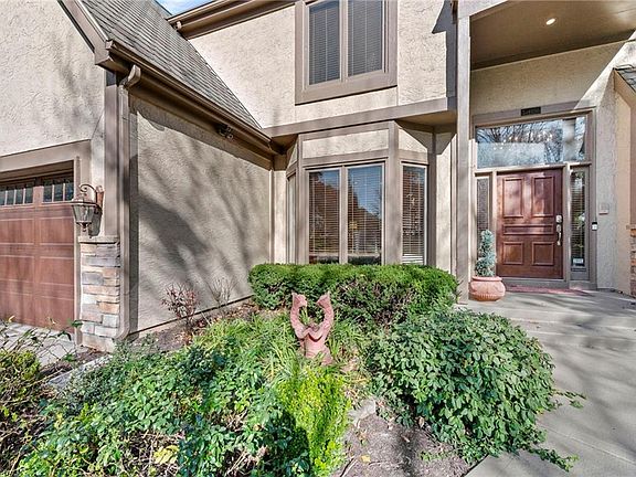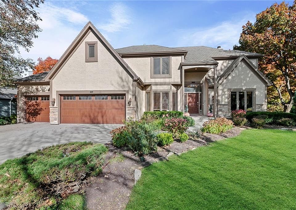 Blue Valley North living that's private, polished, and built to last. This Cherry Creek home stands out immediately with its stone–stucco–brick exterior, 50-year Grand Manor roof, and a level driveway that frames the curb appeal perfectly. The entire lot is wrapped in wrought-iron fencing, providing privacy, security, and a clean, upscale look from every angle.