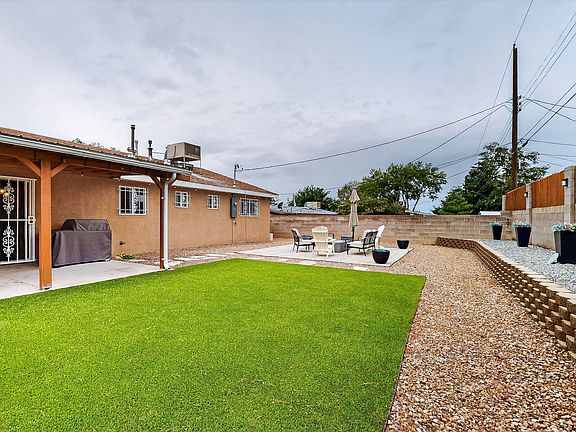 Stunning, Super Clean, Bright Home. Pride of Ownership. Fabulous Floor Plan. Amazing Updated Dream Kitchen with Center Island, Beautiful Cabinetry, Gleaming Granite Counter Tops, Shining Stainless Steel Appliances, Natural Gas Range. Spacious Dining Area... Updated Modern Light Fixtures... Updated Bathrooms... Relax and Enjoy Enchanted New Mexico Evenings in the Lovley Backyard with Covered Patio or Open Patio. Low-Maintenance Turf Lawn and Southwestern Rock Landscaping. Oversized Storage Shed. Upgraded Furnace, Water Heater, Electric Panel. Super Convenient Heights Location... This home offers convenient access to I-40, Tramway Boulevard, Foothills Open Space & ABQ Uptown...