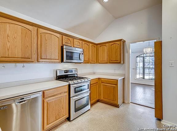 Step into luxury living with this exquisite four bedroom, two bathroom, single story home, nestled in the gated community of Cedar Springs. This stunning property offers a blend of style, comfort, and modern conveniences, making it the perfect choice for discerning renters. Upon entry, you are greeted by a formal dining room, setting the tone for elegant dinner parties and memorable meals with guests. The heart of the home is the spacious family room, featuring a warm fireplace that serves as the perfect backdrop for relaxation and conversation and custom built-ins to store books, collectibles, or your most cherished photos. The room seamlessly flows into a state-of-the-art kitchen equipped with a gas cooking range and a water filtration system, ensuring culinary adventures are always at your fingertips. Adjacent to this is a cozy breakfast nook, ideal for casual dining or sipping your morning coffee while soaking in serene backyard views. The home comes fully equipped with a water softener, washer, and dryer and has beautiful wood laminate flooring throughout, adding a touch of sophistication. Tucked away on a quiet cul-de-sac, the property offers tranquility and privacy. The easy-maintenance backyard beckons with a covered patio, a sprinkler system, and mature trees providing ample shade. The large two and a half car side-entry garage ensures plenty of storage space. As a resident of Cedar Springs, you'll enjoy access to a variety of amenities, including a sparkling community pool and tennis court. This home's prime location brings you close to USAA, Westover Hills, The Rim, Helotes, Alamo Ranch, and more, offering a plethora of shopping, dining, and entertainment options. 12 month lease term, renters insurance required
