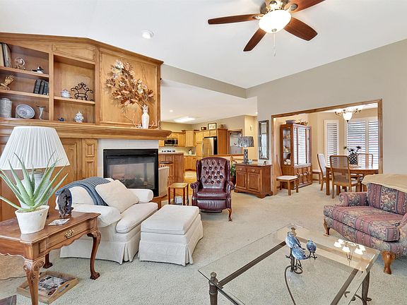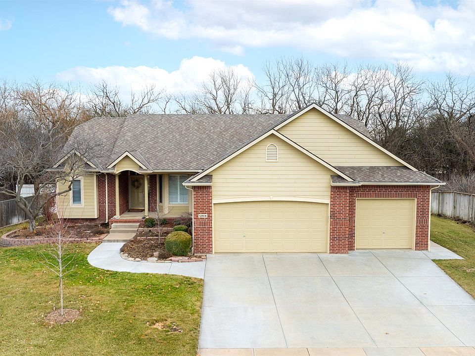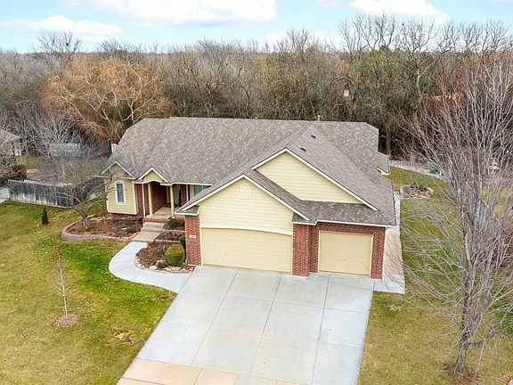 HICKORY CREEK ESTATES-Split Ranch home with very open floor plan and Maple woodwork. Main floor features 1,737 sq. ft with 3 main floor bedrooms, 2 full bathroom, Formal Dining & Living Rooms and a large area that could be used a Hearth room or a second dining area with Hardwood flooring just off the Kitchen. The Kitchen is a very Spacious with a raised counter and eating bar, built-in desk and a walk-in Pantry, SS appliances and lots of cabinets and Hardwood flooring with a 3-way fireplace. All of these rooms have 2 wood blinds and lots of natural lighting. Large Living room with 10’ ceilings and 2 large picture windows & a separate Formal Dining area. The Master Bedroom features a coffered ceiling with 2 large windows and a Master bathroom with double sinks, a shower and garden tub and walk-in closet. A large spacious finished basement has a view out windows, a Family and Rec. Room with a nice Wet Bar & fireplace. There is a 4th bedroom and a 3rd bathroom also with 2 separate storage areas and a hookup for a second washer & dryer. There is also a main floor laundry room. The lot Features a very nice large back Deck and Patio on a treed lot and very private. There is a well and sprinkler system and lots of nice landscaping around the home. The exterior of the home has Hardy board siding and a 3-car sheet rocked garage with openers. The 3rd car bay is 25’ deep with a 9’ wide and 8’ high garage door. The neighborhood features a 2 ½ acre lake with walking path, a community swimming pool and a clubhouse and trash and recycling are included in the HOA dues. NO SPECIALS and Maize schools. Schedule a showing today for this great home and neighborhood.