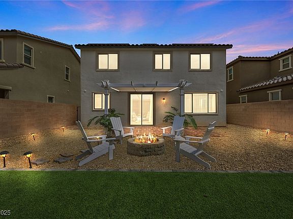 Experience elevated living in this stunning home in the exclusive gated community of The Cove at Southern Highlands. This move-in-ready residence offers sophisticated finishes and thoughtful upgrades throughout. The open-concept layout features luxury vinyl plank flooring, sleek quartz countertops, and a gourmet kitchen complete with stainless steel appliances—including refrigerator, stove, microwave, and new dishwasher and disposal. Washer, and dryer are also included. The spacious upstairs loft offers flexibility as a media room, office, or additional living space. Retreat to a serene primary suite with a spa-inspired bath, ample sized walk-in closet, and stylish tile finishes. Large and inviting backyard features a fire pit with louvered pergola for custom shade options. Garage w/epoxy flooring. Prepaid solar lease through 2039 offers effortless energy savings. Enjoy vibrant community amenities, including a sparkling pool, BBQ area, dog park, and playground! Don't miss this one!