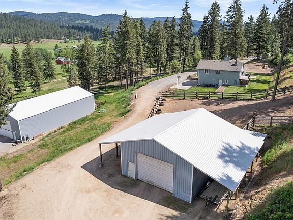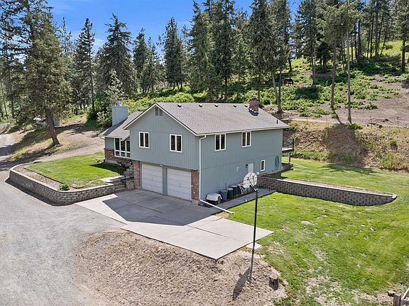 Rare opportunity nestled on the back side of Green Bluff with views of rolling hills, trees, and the top of Mt. Spokane! This well-maintained home sits on 5 acres, with an attached 2-car garage, large 40x80 insulated shop, and a 30x40 barn with 3, 12-foot lean-tos attached. This equine-friendly property comes with a fenced pin and a corral, and the entire property is wired with an invisible fence. There is plenty of space with 4 bedrooms on the top floor and 2 non-conforming bedrooms in the basement. Enjoy separate entertainment spaces with 2 living rooms, formal & informal dining rooms, & a beautiful new Trex deck off the primary suite that acts as a roof for the downstairs patio or wood storage for the wood-burning stove. Don’t miss your chance to enjoy this beautiful property with an ideal location, just 6 minutes to Green Bluff, 12 minutes to Yoke’s, 15 minutes to Costco, and under 20 minutes to Target at the Y. Watch the video tour & schedule a showing today!