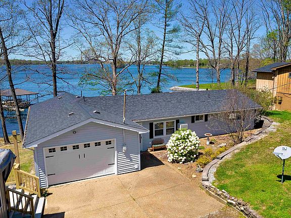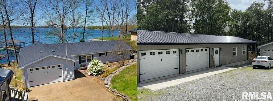 Don't miss out on this rare two for one opportunity. Enjoy the sunsets on this wooded double lot on deep water with spectacular lake views. The main house has cathedral ceilings and combined living and dining area, kitchen, laundry, and four bedrooms. Master bedroom has attached bathroom. Large bedroom in lower level has its own walk out to lake and patio. Main house also has attached garage, sun room, and roof has been replaced 2023. The separate garage and mother in law suite was completed in 2024. It has 1500 square feet and features an open floor plan combining living room, dining, and kitchen area as well as French doors overlooking the lake. Large bathroom, with soaking tub separate shower, white cabinetry with designer lighting. Also includes a spacious 29X25 garage with 2 garage doors. Large docks with 2 boat lifts, jet ski lift, fish feeder, and boat house with 4 separate patios overlooking the lake. New wiring to boat house and dock. Both homes have separate utilities along with substantial income opportunities.