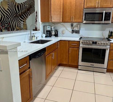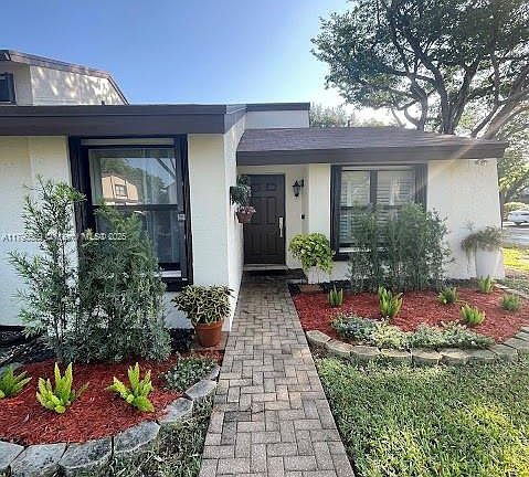 This beautifully updated corner unit features high end finishes throughout, a modern kitchen with a 6-month-old stove offering air fryer, convection, and self-cleaning functions. Bathrooms boast sleek porcelain tile and state-of-the-art faucets. All impact windows ensure peace of mind, while the spacious ~700 sq ft covered patio is surrounded by stunning new landscaping—perfect for relaxing or entertaining. Enjoy added living space, a custom bar/breakfast nook ideal for working from home, an HVAC system under 5 years old, and an outdoor storage unit. Move-in ready with premium upgrades throughout!