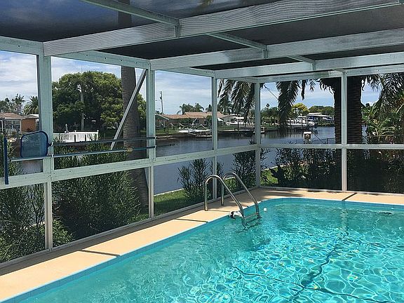 Virtual Tour, Easy to show, WATERFRONT POOL HOME located in the desirable community of Leisure Beach.This home sits on a cul-de-sac with 135 feet of seawall on an over-sized fenced in lot. Interior has been freshlypainted in this adorable 2 Bedrooms, 2 Bath home, with a flex room/sun room off of the living room area. Plusa screened in back porch that is west facing to enjoy those beautiful sunsets with your beverage of choicewhile enjoying the ocean breeze! The front of the home features a covered area that once served as a carportbut could easily be screened in. Tile roof was replaced in 2012, New HVAC installed May of 2020, electricalpanel inspected 2020, and newer water heater. You must see this home to appreciate all it has to offer. Stopby...fall in love and start living the Florida lifestyle!