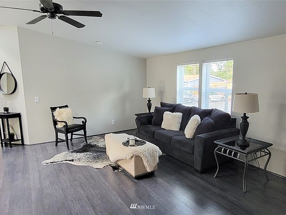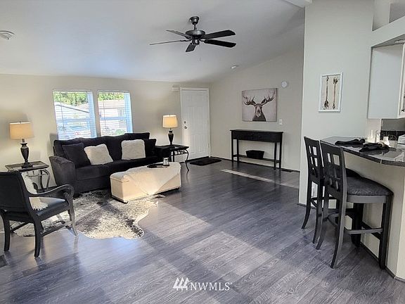 Beautiful move in ready home in prime location. Minutes from downtown Woodinville and Bothell in the desirable Holly Hills community where you own the land. Situated on a corner lot with low maintenance landscaping and private fully fenced backyard with large storage shed and patio perfect for entertaining. New interior-exterior paint and laminate flooring. Spacious living area with vaulted ceilings and skylights create an inviting floor plan. The kitchen has newer refrigerator, gas stove and bonus eating bar. The A/C will keep you cool in the summer and the fireplace will keep you cozy in the winter. The hard-wired generator will also keep the lights on! HOA: Community club, tennis courts, playground, park and RV storage.