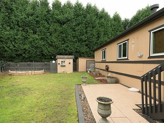 Located in Holly Hills, a community where you own your lot. Situated on level lot in a cul de sac. Offering 3 bdrms, a full bth (w/new tub & swanstone surround in 2013) & 3/4 bth off mstr w/ oversized shower. Furnace, H20 & carpet/flooring 3 years old. Vinyl windows & kitchen appl new in 2014. You will want to see this gorgeous kitchen, new counters, sink, faucet, wide plank laminate flooring, cabinets updated. 8X13 patio, lawn area & 4 sheds w/power. RV pkng lot & tennis court, EZ to I405