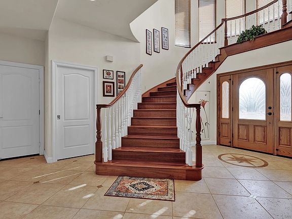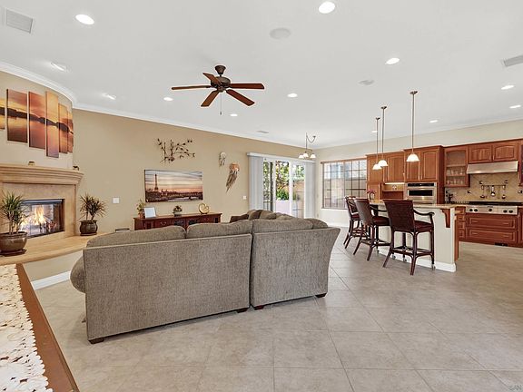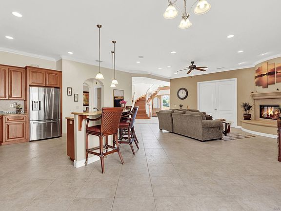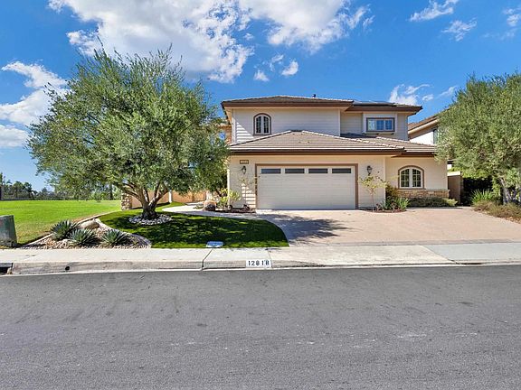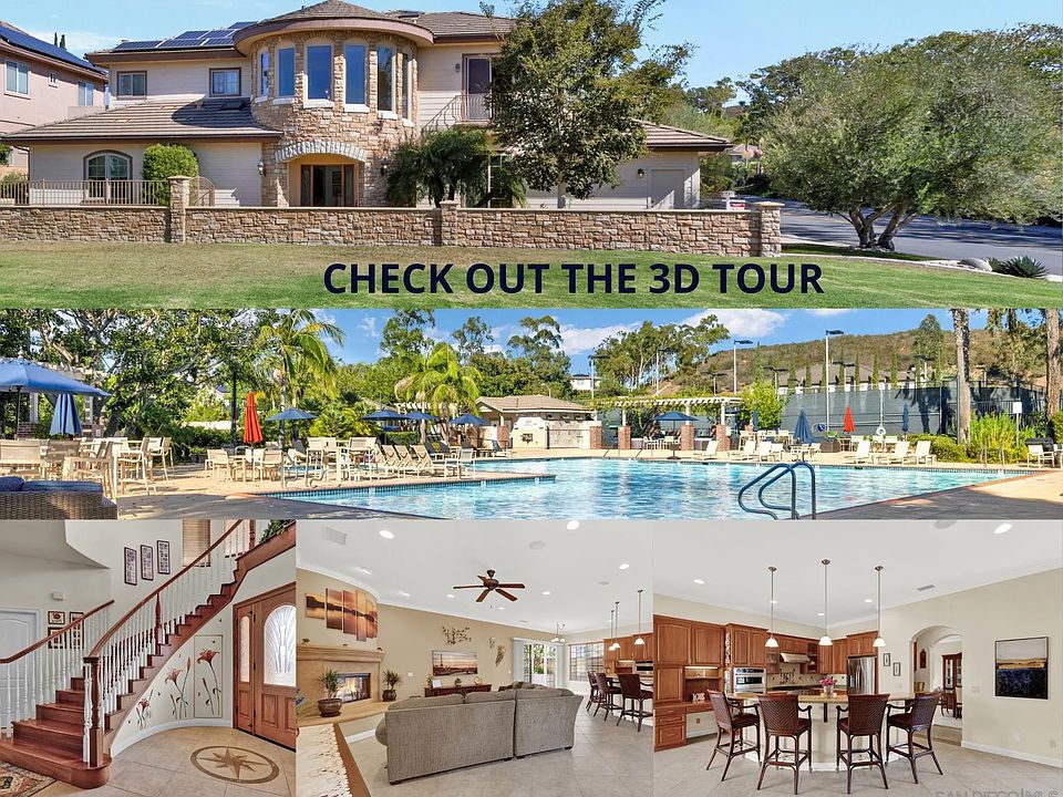 This elegant custom home was built in 2005, designed for entertaining & enjoying time with your family with the open floor plan to the family room, kitchen, curved bar & breakfast area. Lovely granite counter tops, cherry wood cabinets w/ built in desk, SS appliances, custom fireplace & tile floors in living space. Unique cherry wood circular stairway w/ tread lighting. New carpet upstairs. Recess lighting. New Hot water Heater & New recirculating hot H2O thru-out house. Built in vacuum. Extra storage thru out home. Easy care front & backyard features turf, landscape lighting, relaxing rock waterfall fountain, stamped concrete patio, pergola. SOLAR paid off. Low HOA. see below.