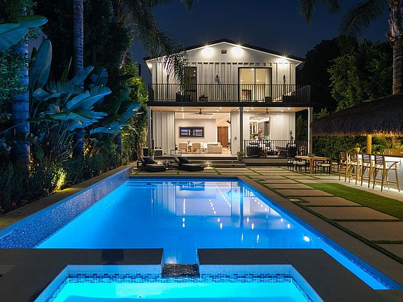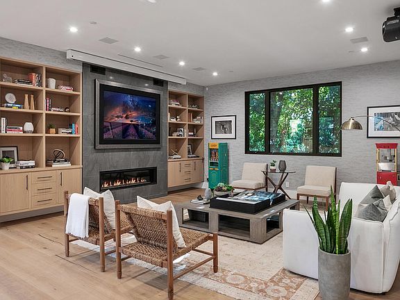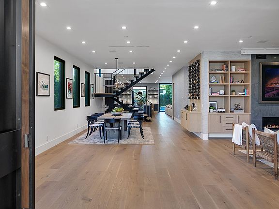 Style and sophistication are realized the moment the large pivot door opens revealing the stunning interior that spans over 4,740 square feet. Embraced with beautiful natural light & openness, your eyes are drawn directly down the elongated hallway and out to the backyard. You're welcomed into the grand formal living area with beautiful custom built-ins & a dining space with a wine display. The decadent chef's kitchen features an expansive island with Caesar stone waterfall countertops, modern cabinetry, brushed black appliances & a walk-in pantry. The kitchen is open to the family room, highlighting a modern fireplace & a porcelain accent wall. Through the floor-to-ceiling sliding pocket glass doors you make your way to a covered patio with heaters & a spacious backyard filled with tall hedging and mature landscape, a full covered bar with a BBQ, fire-pit, pool/spa & a sport court. The master suite features an accent wall with a floor-to-ceiling marble fireplace, custom built-ins, an attached deck with views of the backyard & a large walk-in closet. The luxurious master bathroom with custom tile-work, a soaking tub, double vanities, & an impressive walk-in shower resembles a spa. This home features surround sound, Lutron system, security system with cameras, is full solar panel & equipped with energy savings. Located in the heart of an upscale Studio City neighborhood, 12818 Landale St is close to the famous Beeman Park & Ventura Blvd, some of the best restaurants & prime entertainment in LA.