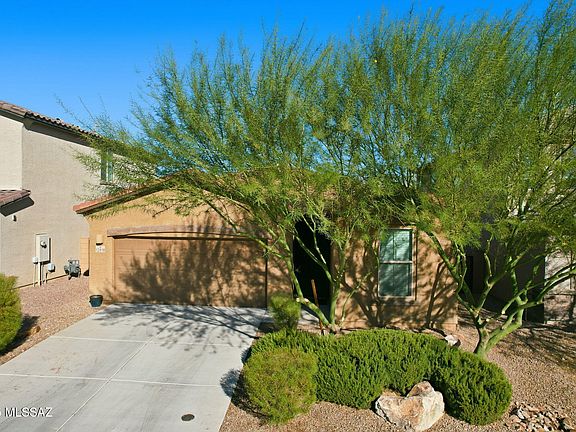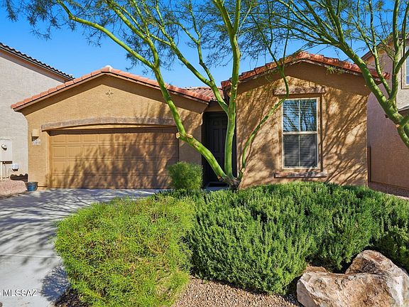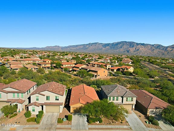 Built in 2021, this beautifully maintained Rancho Vistoso home offers modern living with 3 bedrooms, a den, and a dedicated desk area--perfect for today's flexible lifestyle. Open kitchen with granite countertops, and huge pantry. Quartz counters in bathrooms adding a refined touch throughout. Step into the backyard and enjoy peaceful sunrise and mountain views to the east, complemented by the serenity of a natural common area directly behind the home for added privacy. Designed for easy care, the outdoor space includes attractive pavers and turf, ideal for relaxing or entertaining without the upkeep. A community park is conveniently located just across the street--this home blends comfort, convenience, and the beauty of the surrounding desert landscape