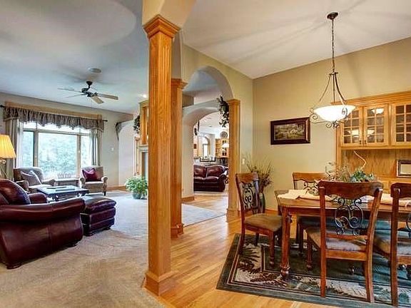 A must see beautiful home in the coveted Hickory Creek Estates area and located in the highly desirable Maize School District. As you wind through Hickory Creek Estates you will notice the club house, swimming pool and lakes before you reach the mature treed landscaped fenced yard of this home. After viewing the lush yard at the front of the home the biggest surprise is still to come when you see the view from the back yard and the over-sized covered deck with an outdoor fan. Enjoy the serene view of trees and wildlife as you enjoy your morning coffee or as a retreat after a long day at the office. The interior of the home is open with formal and breakfast dining areas. The two way gas fireplace opens to the formal living room and the hearth room and kitchen. A spacious island offers more work space for the cook who will enjoy the new gas range plus an abundance of counter space, cabinets, an up and down lazy-susan cabinet next to the range and a double pantry with pull out shelving. Don't forget the main floor laundry room with more storage. The master suite also overlooks the wooded back area. The master bath features double sinks, shower and a jetted tub plus a spacious closet. The view-out/walk-out lower level is ready for a family evening of TV, games or relaxation around the 3 sided gas fireplace. Don't forget the wet bar area that is perfect for entertaining. The 5th bedroom is designed to also be an office with view out windows, closet and interior windows viewing the family room. An additional bedroom and bath finish this cherry stained wood basement. You will love to call this home YOUR HOME!!!