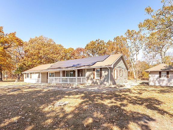 In case you missed out, this 1 is back on the Market at no fault of the Seller. House & 2 acres in Prime Branson Location! Feel like you're living in the country, yet you're 2 minutes from restaurants, shopping, medical, Branson Hills, and more! This beautiful ONE LEVEL home features 4 bedrooms + office, 2 1/2 bath, 2800 sq. ft., open living space, cozy living room, family room, large laundry/storage room, mud room, solar panels and more. The large kitchen has been completely redone and updated with stainless appliances & granite counters! Outside, enjoy the firepit & garden areas and watch countless deer and wildlife! There are also 2 storage sheds for all your extra things! With 2 flat as a pancake acres, what more do you need? Walmart is literally 1 minute away! This is a must see!