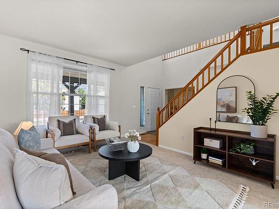 Perfectly situated on the 11th hole of Thorncreek Golf Course, this beautiful two-story home offers stunning views and a lifestyle filled with comfort and convenience in the highly desirable Hunters Glen neighborhood. Step inside and immediately feel at home as natural light pours through the windows, highlighting the warmth of real hardwood floors and a thoughtful, flexible layout. The main floor features two spacious living areas—one with a cozy gas fireplace and custom built-in bookshelves—perfect for both relaxing evenings and lively gatherings. The bright, white eat-in kitchen has been tastefully updated with gorgeous quartz countertops, providing plenty of space for cooking, dining, and connecting with loved ones. A formal dining room adds a touch of elegance, making holiday meals and dinner parties extra special. On the main level, you’ll also find a bedroom that can easily double as a private home office, located conveniently near a full bathroom and laundry area. It’s an ideal setup for overnight guests or as a potential main-level primary suite. Upstairs, a generous loft offers even more versatile living space, along with a spacious primary suite featuring a luxurious 5-piece bath and walk-in closet. Two additional bedrooms and another full bathroom complete the upper level. The unfinished basement provides endless potential for future customization, whether you envision a home theater, gym, or game room. Outside, enjoy breathtaking views of the golf course right from your backyard. A SunSetter retractable awning adds comfort and shade, making warm summer days even more enjoyable. Hunters Glen residents enjoy access to fantastic neighborhood amenities, including a seasonal outdoor pool, a scenic lake perfect for walking or paddle boarding, a playground, and a splash pad for the kids. With quick access to I-25, commuting is a breeze while still enjoying the peaceful charm of this vibrant community.