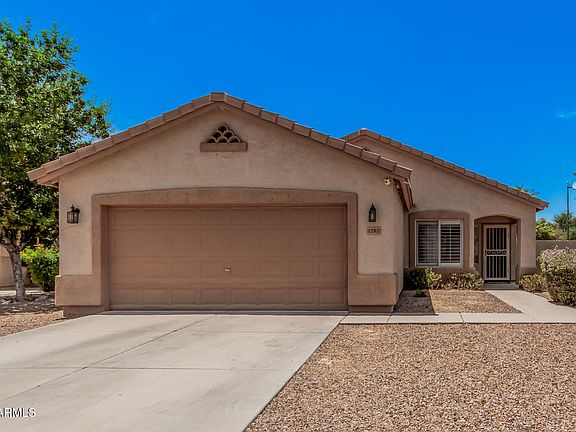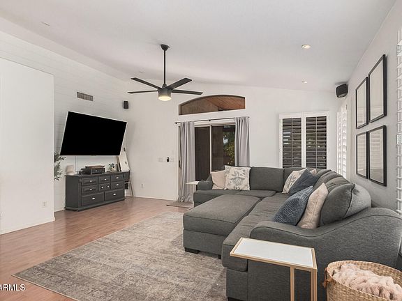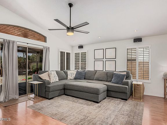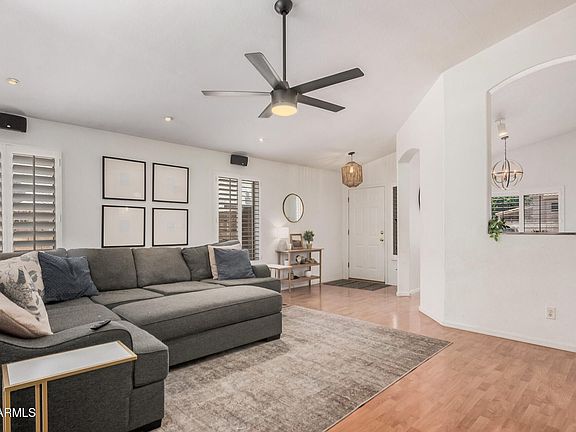 community- greenbelt behind home and an oversized greenbelt less than a block away. Bright open floor plan with vaulted ceilings, a neutral palette, plantation shutters and wood laminate floors. Kitchen features white cabinetry, granite counters, an island with breakfast bar, pantry, & stainless steel appliances! Enjoy relaxing in the backyard under the cozy covered patio with no neighbors behind. Conveniently located near some of Gilbert's best restaurants, shops and parks with easy access to the freeway.