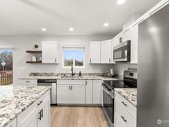 Are you dreaming of a beautiful brand new home just 1 minute from I-5? This exquisite 3-bedroom, 2-bathroom house is complete and ready to build memories! With fantastic features that enhance both style and functionality. Open-concept layout perfect for gatherings and hosting friends. It just FEELS like home. Enjoy cooking and entertaining with stunning granite countertops and brand-new stainless appliances. Experience the elegance of luxury laminate plank flooring throughout, offering durability and easy maintenance. New cedar fenced backyard welcomes the critters. Sleep well at night knowing your investment is under builder warranty and NO HOA dues!
