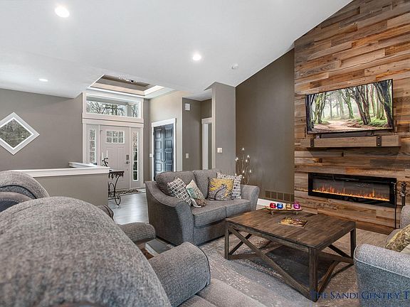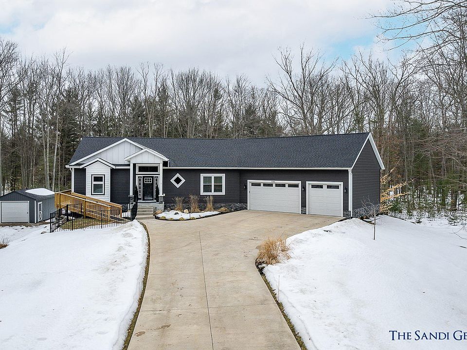 This Expansive custom built ranch sits on a private wooded cul-de-sac with 1.2 acres, conveniently located close to restaurants, and Lake Michigan Beaches. Enjoy the open concept main level which starts with the stunning foyer with tray ceilings, and opens into the spacious living area which showcases a modern fireplace with barnwood backing. The gourmet kitchen features custom white cabinetry, granite countertops, under cabinet lighting, purified water dispenser, stainless steel appliances with a eat-in snack bar, and new built-in coffee bar adjoining the dining area. Glass French doors lead to a flex room which could be utilized as a formal dining room or office. The main floor master suite boasts a full bath with gorgeous tile shower, granite countertops, dual sinks,