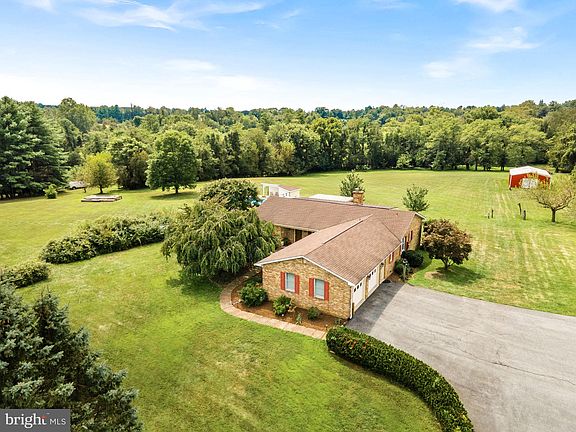 The perfect property with main level living.  So much to offer in this all brick ranch on just shy of 5 gorgeous acres off hard surface road with high speed internet.  The desirable floor plan offers lots of open space and privacy areas as well.  A lovely large living room with wood burning fireplace leads into a family room with lots of natural light.  The amazing sun room has double sliding doors  that lead to a large deck to enjoy the incredible sunsets.  Upgraded kitchen and appliances with abundant counter space.  A delightful eat in space with bay window overlooking a secret garden and fish pond.  Adjoining the kitchen is a large open area with many built-ins and washer and dryer. The bedrooms have a split floor plan for privacy.  On one side of the house is a primary bedroom with updated bathroom with walk in shower.  This side of the home also has an office.  The other side of the home has two nice size bedrooms with a full updated bathroom with double sinks in the middle.  A mudroom adjoins the kitchen to the large two car garage.  Lovely in ground pool is perfect for summer fun and entertaining.  Large 24X40 building with lots of possibilities.  An additional shed is also on the property.  The land is beautiful, level and is perfect for gardening or animals with no HOA.  It is hard to find a lovely home with main level living in Loudoun County.  This one will not disappoint.