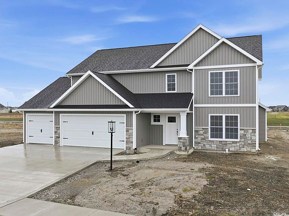 Located on a beautiful pond lot, this Carriage Place Homes 4-bed, 2.5-bath two-story in the NWAC School District offers a functional layout with exceptional attention to detail. Inside, the open-concept Kitchen impresses with custom cabinetry, a large breakfast bar, quartz countertops, an oversized pantry, and brand-new stainless steel appliances. The Kitchen flows seamlessly into the dining area and Great Room, highlighted by a stunning stone fireplace. The main level also includes a convenient half bath and a versatile den—perfect for a home office or playroom. Upstairs, the spacious primary suite features a private bath with double vanity and a large walk-in closet that connects directly to the laundry room for maximum convenience. Three additional bedrooms, a full bath, and a linen closet complete the second floor. Additional highlights include a built-in bench seat, drop zone that offers functional storage for everyday items - enhancing the home’s overall convenience, and an energy-efficient HVAC system. A beautifully designed home that is move-in ready in a sought-after location. A landscaping package is included, ensuring beautiful curb appeal. Schedule your showing today!