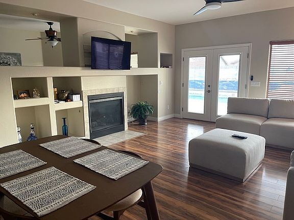 Available, a single-level, 3 bedroom, 2 bath, + den home, including a 3-car garage, a spacious kitchen w/ breakfast island, white cabinetry, & stainless steel appliances. Outside, enjoy the natural gas heated pool and spa, as well as a covered patio. The spacious master suite features a walk-in closet and a large walk-in shower. Additionally, the home has a 2-way gas fireplace, north/south exposure, and a water filtration system. Furniture included as shown in the pictures. Weekly pool maintenance is included. Call for more details.