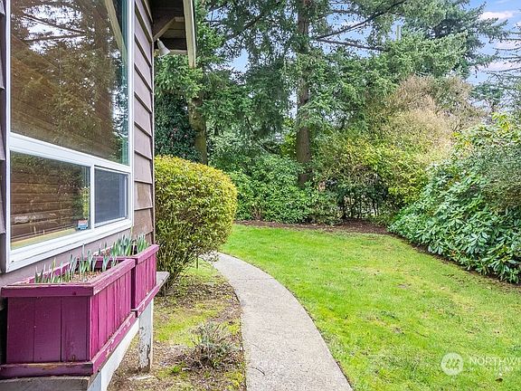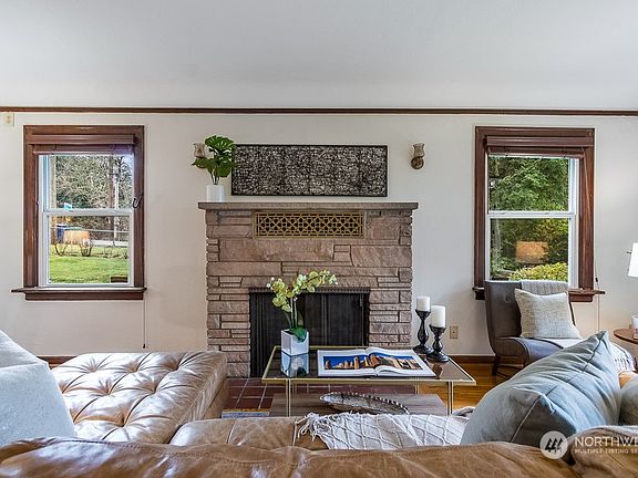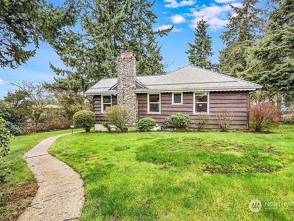 Enchanting bungalow in quiet woodland setting just min. to I-5/405 & other major routes for work, fun & travel. Cabin-like abode nestled in a quarter acre of greenery is the perfect tonic to balance the busy buzz of urban living. River-rock/ gingerbread filigree exterior, coved ceilings, warm hardwds, orig. artful millwork thru-out; built-ins & big windows in cozy kitch, generously sized bedrms. Updated electrical, copper plumbing, gas heat/water, A/C, dbl windws, Gutter Guards, elastomeric deck. More potential in basmt w/ sep. entry. Lush landscaping is bursting with gorgeous palette of colors & textures. Superb location w/i easy reach of essentials for daily routines, special shopping, indie-dining, Lk WA, airport, & more. Just move in!