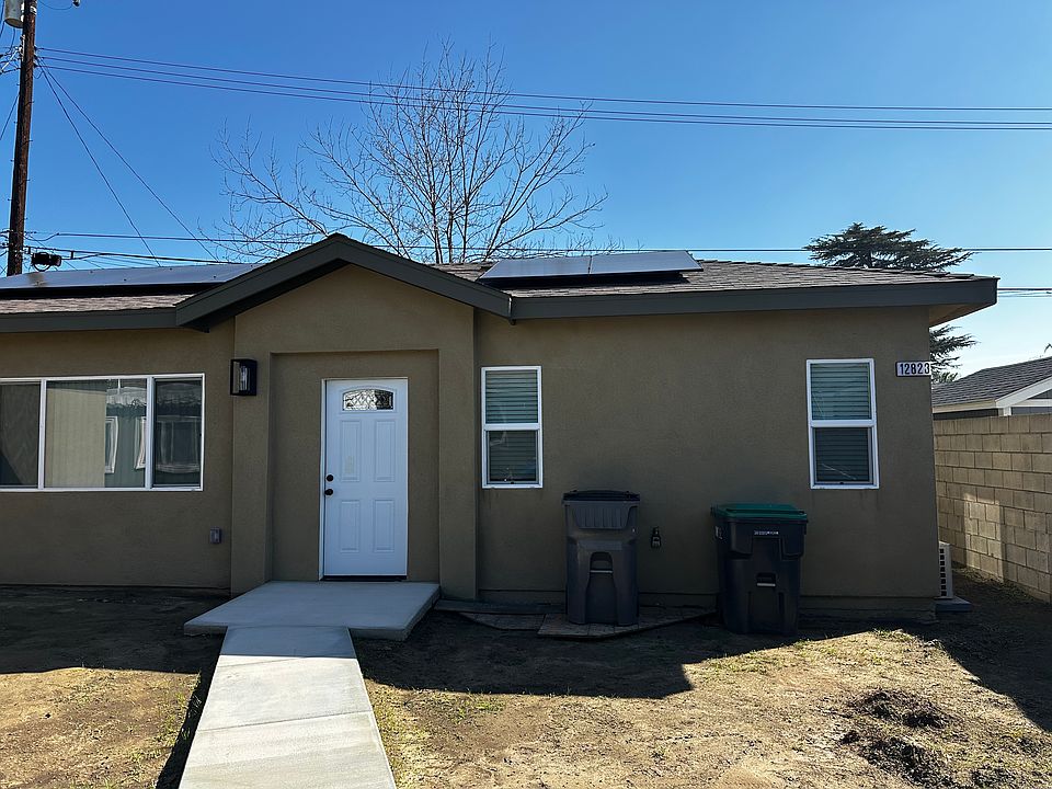 Brand New single story house in the backyard. Side yard entrance. Strict no pet policy. 3 bedrooms and 2 bathrooms with showers. Master suite with its own bathroom and walk-in closet. Inside laundry. 9-foot tall ceiling. Each room has its own split unit A/C + Heater. All Electric appliance and solar panels ready to serve. Walking distance to Chino High School and close proximity to other daily necessities stores. One assigned parking space on driveway. no pet policy. shared water and trash paid to existing tenants in the front house. you will pay electricity bill. no gas bill. you are entitled to one parking space on the driveway.