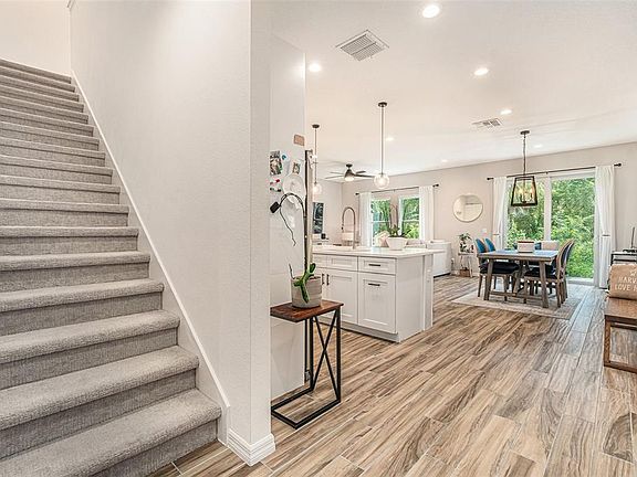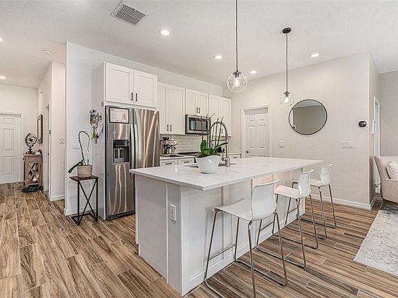 Welcome to The Sanctuary at Rocky Creek! This beautifully maintained townhome offers modern design, abundant natural light, and a flawless flow that truly feels like home. Featuring 3 bedrooms, 2.5 baths, a spacious loft, and a full 2-car garage, this residence is in exceptional condition and move-in ready. Built with all block construction and hurricane-impact windows, the home lives like a single-family residence. Inside, you’ll find wood-look ceramic tile, volume ceilings, and an open layout perfect for entertaining. The chef’s kitchen boasts quartz counters, subway tile backsplash, an oversized island, walk-in pantry, stainless steel appliances, and stylish finishes—all overlooking the family and dining rooms. Upstairs, a versatile loft provides space for a home office, media room, or play area. The owner’s suite offers a custom accent wall, spa-like bath with quartz counters, dual sinks, and a walk-in shower, plus a generous closet. Secondary bedrooms are spacious and share a beautifully finished bathroom. Outdoors, enjoy a private paver patio with peaceful wooded views and no rear neighbors or roads— the perfect setting to relax or entertain. The Sanctuary at Rocky Creek is a boutique community of just 23 homes, offering serene conservation views while being minutes from top-rated schools, shopping, dining, parks, and major commuter routes. Only 10 minutes to Tampa International Airport, 15 minutes to Downtown Tampa, and 30 minutes to Clearwater Beach. This immaculate home won’t last—schedule your private showing today!