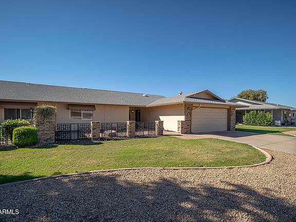 Welcome to this beautifully updated north/south facing home located in the vibrant, active adult community of Sun City West. This residence offers a fantastic blend of comfort, style and smart upgrades — perfect for those seeking a move-in ready lifestyle in a warm Arizona setting. The front courtyard lined with modern pavers greets you in style and the screened-in back patio expands your usable space year-round, shaded under the Arizona sun. This spacious 2 bedroom, 2 bathroom, single-level floor plan is ideal for easy living. The updated kitchen is contemporary and timeless. The elegant tile flows throughout the open floor plan making maintenance a breeze. Bathrooms have been thoughtfully updated with granite countertop vanities and ornate cabinetry lending a luxury spa-like feel. One of the stand-out features of Sun City West is the sheer breadth and quality of amenities designed with your interests and lifestyle in mind. Four full-scale recreation centers, each loaded with pools (indoor & outdoor), fitness centers, courts for tennis, pickle ball, lawn bowling, bocce ball, shuffleboard and more. Seven golf courses within the community for avid players. Dedicated hobby and craft rooms, clubs, a theater, library and spaces for arts, music, dance and social gatherings. This home is located on a beautiful street, close enough to all the amenities while offering a serene space to retreat.