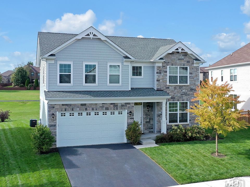 This gorgeous and almost brand new 4 bedroom home on a premium homesite in the 308 Oswego School District area of the sought after Grande Park subdivision in Plainfield is now available for you to move right in. Enjoy all the current and modern designs, features, colors and open floor plan ideal for family living and to entertain your friends and family during the upcoming holidays. The kitchen has a large island, lots of cabinets, granite countertops, back splash, pantry, and all stainless steel appliances are included. The living room has been converted to an office and upgraded with double glass french doors. It could also be used as a first floor study or 5th bedroom. The original floorplan was extended with a sunroom offering beautiful views of park area. Often the sunroom is used as a separate and formal dining room. Luxury master bedroom suite with custom tray ceiling and full private bath with large shower, double sinks and large walk-in closet. 3 additional oversized bedrooms with full hall bath with double sinks. The laundry room is conveniently located on the 2nd floor! The full unfinished basement is ready for your finishing touches and would offer an additional 1100+ SqFt of living area. Professionally landscaped yard with patio. Grande Park is a clubhouse community with pool, tennis and basketball courts, sledding hill, sport fields and much more. Welcome Home!
