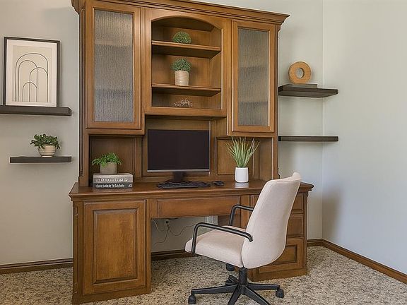 Tucked inside the sought-after Shire Lea Village, this thoughtfully designed home checks every box for comfort, space, and everyday functionality. The open kitchen features granite countertops, tons of cabinet space, and flows seamlessly into the dining area and main living room, where a cozy gas fireplace and detailed ceiling design make it the perfect place to unwind. Just off the entry, the study with built-ins and French doors is ready for your home office, homework zone, or daily command center. The split floor plan offers privacy, keeping the secondary bedrooms on one side and the primary suite on the other. Your suite is a true retreat with a double vanity, whirlpool tub, tiled shower, and an Australian-style closet that conveniently connects to the laundry room. Speaking of laundry, you’ll love the thoughtful setup with a mud bench and extra storage for all the “real life” things. Step outside to a spacious covered patio overlooking the yard, complete with a sprinkler system front and back. Both refrigerators, washer, and dryer stay with the home, and a brand-new HVAC system was installed in April 2025. A home warranty is also included for peace of mind.