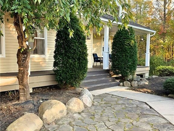 Feel right at home as you are welcomed by a “farmhouse feel” front porch where you can spend the evenings enjoying the beautiful sunset sky. Come into a warm and inviting but open foyer, showing a separate dining area to the left, followed by an eat in kitchen with island. There is one step down into a very spacious but cozy living room with gas fireplace, perfect for TV binging and warm family gatherings. The newly refinished hardwood gives a rich feeling to the first floor through the mudroom into the laundry room. A laundry chute eliminates heavy laundry baskets and brings back an old luxury. Head downstairs to plenty of finished space with full bath, perfect for out-of-town guests, entertaining or family movie nights. Upstairs you will be pleasantly pleased with the 4 very sizable bedrooms. A double vanity, full hall bath is perfect for the kids, with a separating pocket door for multi-person use on busy school mornings. The main bedroom welcomes you through French doors to a window bench seat retreat, made for you to get lost in your latest book or just enjoy some alone time. It introduces you to the huge master suite with vaulted ceilings and large walk-in closet. The closet boasts its own little secret with a door leading to a large walk in storage area, perfect for holiday décor or hiding Christmas gifts! The large en-suite bath offers a jetted tub with separate shower and plenty of linen space. Every window holds a beautiful view of the outdoors. The lot is wooded with a creek running along the edge of the trees and plenty of open area as well. A three-car garage gives plenty of space for storage. This home is filled with character and charm. Come and see all the amazing things this home offers!