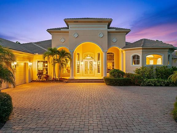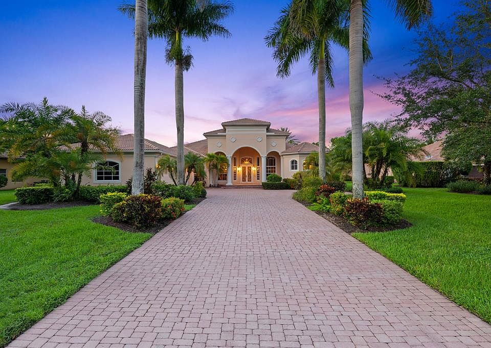 Experience timeless elegance in this Transitional Mediterranean estate in a prestigious guard-gated community. Nearly an acre of lakefront blends classic architecture w/ modern luxury, offering 4 ensuite beds, office, & bonus room. The oversized primary suite features custom walk-in closets & a spa-like ambiance. Marble floors & soaring ceilings adds sophistication. Entertain in the grand living room, formal dining, wet bar, & chef’s kitchen. Outdoors, enjoy a pool, hot tub, summer kitchen, & tranquil lake views. Full hurricane protection w/ impact windows & shutters provides peace of mind. Amenities include 24-hr guard gate, clubhouse, fitness center, tennis, basketball, volleyball, and tot lot. Tucked away from main roads yet minutes to highways, A rated schools, dining, & shopping.