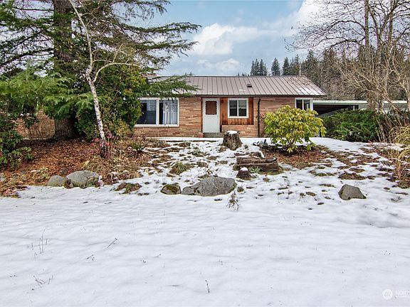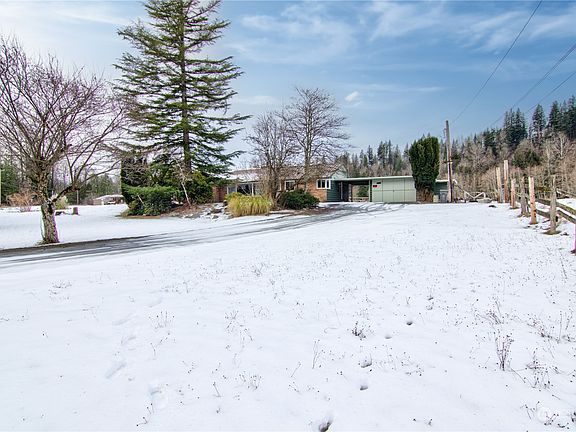 A true mid-century home on 4.7 acres offers many options for this unique and beautiful space. Cozy up next to the oversize fireplace and enjoy the gardens outside the large livingroom window. Home features open design with large Arizona sandstone fireplace, three bedrooms and 1 3/4 baths. Formal dining room. Integrated cabinets in the hallway and cedar lined closets in all bedrooms. Solid wood floors in much of the house. Long lasting metal roof. Dedicated laundry room, mud room. Attached garage and carport allow easy access to the house. Property is a perfect equestrian space with a 24 stall stable and an additional large barn for equipment and storage. Customize and update this house to be your perfect home in fast growing Sultan.