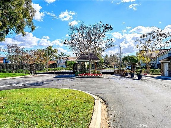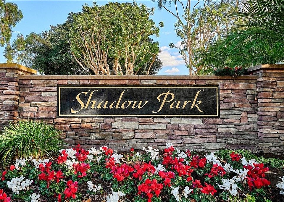 Welcome private gated community of Shadow Park, boasting grassy green parkways, tennis courts, clubhouse, resort style swimming pool, as well as a playground and picnic area. The home sits stately on a corner lot at the end of a quiet cul de sac, with a lush center parkway. The entry of this single level home flows into the formal living and dining rooms, complemented by light wood vaulted ceilings and a white brick fireplace. The generous sized kitchen has a separate breakfast room, pull up seating peninsula, and opens to the spacious family room, making the large area perfect for entertaining. The North wing of the home features 4 generously sized bedrooms and two baths, including the large primary with high ceilings, and en-suite that has dual sink vanities and a walk in shower. The back yard has a beautiful covered patio that spans the length of the home, plenty of room to play or just relax, and all block wall fencing. The updated roof and windows throughout, two car attached garage and convenient proximity to parks, shops and dining, make this a wonderful place to call home!