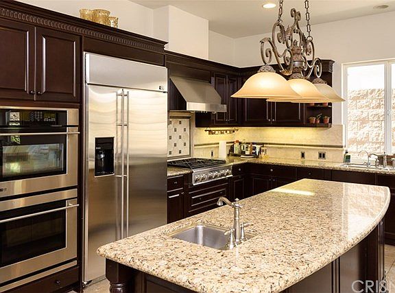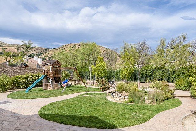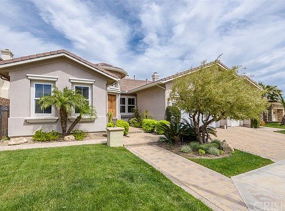 10 years young Porter Ranch home with over 3,300 sq.ft. of living space and sits on an almost 12,000 sq.ft. lot. Located in the sought after guard gated Renaissance community. Inviting entry leads you to the flowing one-story floor plan with dark hardwood floors, Italian tiled floors with custom accents/trim, designer paint colors, smooth ceilings, recessed lighting, tall ceilings, and more! Living room, Formal dining, and one bedroom w/private bath lead you to the spacious and open kitchen and family room area. Abundant cabinets and countertops, desk area, center kitchen island with sink, double oven, 6-burner range, and more highlight this room. The Family room has a media niche, recessed lighting, fireplace, and patio door to rear grounds. Bedrooms two and three both have their own bathrooms. A double door entry takes you into the Master Bedroom with crown moldings, carpet, recessed lights, door to rear grounds, private Master bath with custom flooring, stall shower, spa tub, double sinks, and walk-closet w/custom built-ins! Mountain views, fire pit, built in BBQ area, direct access from 3-car garage, community tennis courts are other amenities of this beautiful home. Park, stores, places of worship, schools, freeways, are all in close proximity.