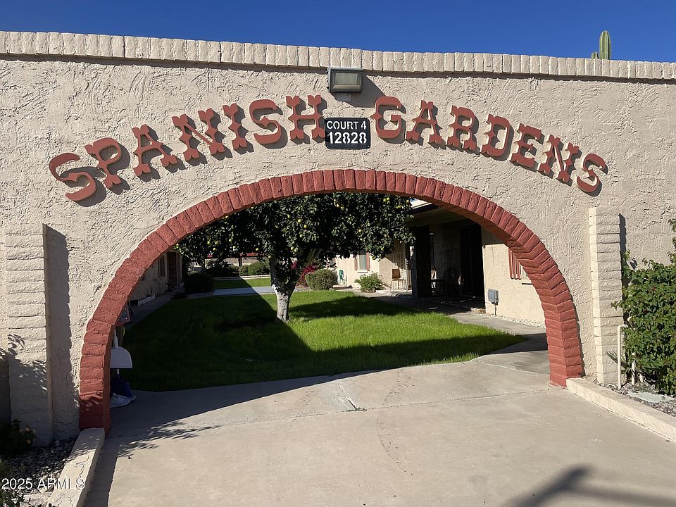 Don't miss your chance to own this charming and spacious single-story home in the desirable Spanish Gardens community of Youngtown! This adorable residence welcomes you with a lovely front porch. Inside, you'll find a cozy living area with a beamed ceiling. The home features 2 roomy bedrooms and 2 bathrooms, including a main bedroom with a private ensuite for extra comfort. The second bedroom comes with a built-in Murphy bed, offering versatility and space-saving convenience.