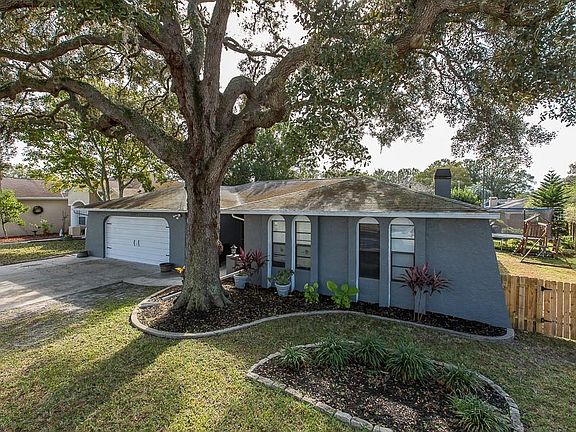 Reduced and Ready for it's New Owner's!!!! Step inside this open and spacious 3/2/2 home featuring a formal living room & a family room with a cozy fireplace to entertain friends and family. A kitchen that offers a large breakfast bar and not one but two pantries. The master bedroom has its own private en suite along with a walk in closet. This 100% carpet free home is ideal for both people and pets. If you prefer the outdoors enjoy a nice cup of coffee in your enclosed lanai or head out to your fenced in private backyard and enjoy a dip in the pool, have fun some jumping around on the trampoline, or kick back by the fire-pit. Brand New Updated Electrical Panel January of 2020, Newer AC System only 6 years old, Brand New Garage Door Motor Replaced in Dec of 2019. Located near restaurants, shopping, hospitals, parks, beaches and the Suncoast Parkway with easy access to Tampa.