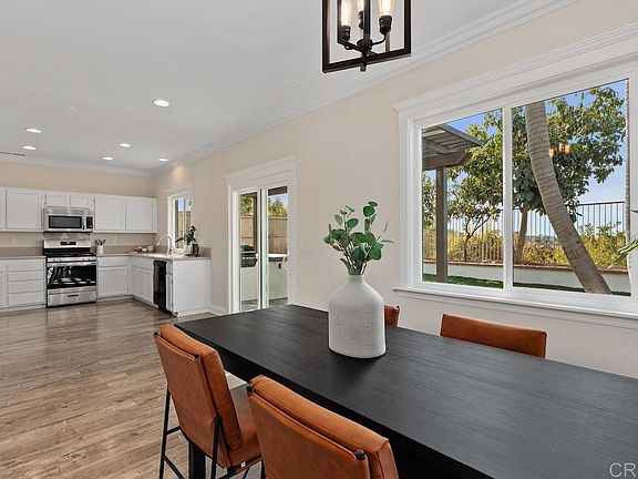 Located in the sought-after Santa Fe Hills neighborhood of San Marcos, this 5 bedroom, 3 bath home offers 2,105 est.sq.ft. of living space, a 2-car garage, and an approx. 4,746 sq.ft. lot - providing incredible value and plenty of room for families or those needing extra space. The home has been updated inside and out with a freshly painted interior and exterior, new carpet, and a backyard with brand-new sod, making it truly turnkey and move-in ready. The open floor plan ensures a seamless flow between the living, dining, and kitchen areas, perfect for both daily living and entertaining. Downstairs boasts a bedroom and full bathroom, while upstairs has 4 more bedrooms and 2 more bathrooms. The primary suite includes a spa-like bath, dual sinks and walk-in closet. Enjoy cooking in the kitchen with ample countertop and cabinet space, s/s appliances and LVP flooring throughout the first floor. Step outside to enjoy beautiful sunset views from the backyard, complete with a built-in outdoor BBQ, perfect for hosting gatherings or relaxing evenings outdoors. Conveniently located near Las Posas Park Pool, community parks, and Grand Plaza Shopping Center, this home offers ultimate convenience. Plus, it’s close to top-rated schools - Paloma Elementary, San Marcos Middle, and Mission Hills High, and just minutes from Palomar College and CSUSM. This home blends comfort, practicality, and a prime location in a welcoming community. No HOA and low Mello-Roos. Buyers and buyer’s agent to verify all in MLS prior to COE.